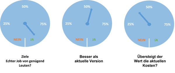 Bei der Bewertung einer Idee im Kontext von JTBD gibt es drei Kernfragen: