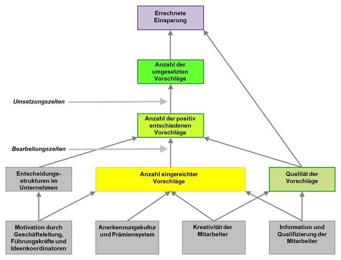 In Abweichung von Abbildung 6 wurden hier folgende Größen genutzt, um den Bezug zu den „Messgeräten“ aus Abbildung 4 und damit zum Kennzahlenvergleich Ideenmanagement augenfälliger zu machen: