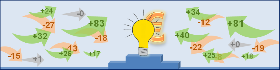 - Wer versucht, eine höhere Einsparungsquote durch eine Steigerung der Vorschlags- und Beteiligungsquoten zu erreichen, sollte nicht gar zu zuversichtlich sein. Die Wahrscheinlichkeit, dass das auf diesem Wege gelingt, ist mit 50-60% deutlich geringer als die Wahrscheinlichkeiten in den beiden zuvor genannten Entwicklungsszenarien.
